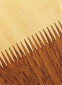 Полученные «красивые» сегменты досок сращиват между собой методом торцевого сращивания, с помощью микрошипа и клея. Полученные склеенные сегменты можно сращивать в длину, которую способно обработать оборудование, как правило до 18 метров. Называются эти элементы ламель.